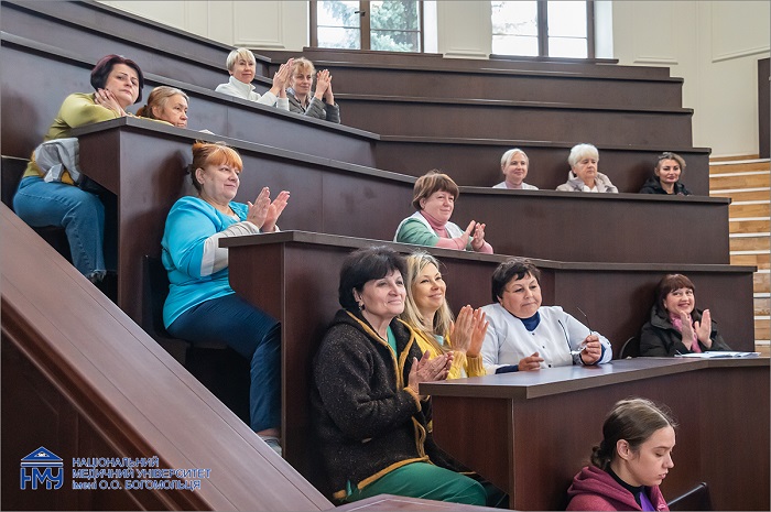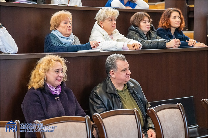 Лекцію прослухали також ректор НМУ Юрій Кучин, перший проректор з науково-педагогічної роботи та післядипломної освіти Олександр Науменко, голова Профкому співробітників Лілія Яременко та керівники структурних підрозділів Університету.