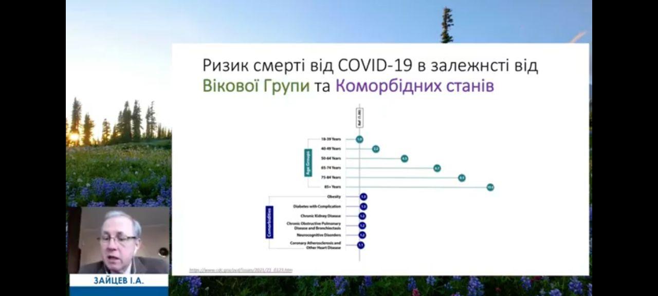 - «Особливості ведення та лікування пацієнтів з covid-19 із груп ризику» — доктор медичних наук, професор, професор кафедри терапії, інфекційних хвороб та дерматовенерології Інституту післядипломної освіти НМУ І.А. Зайцев. Учасники конференції дізналися про супутні захворювання, рекомендації щодо ведення пацієнтів хворих на COVID-19 із діабетом, ключові рекомендації кардіологічних асоціацій;