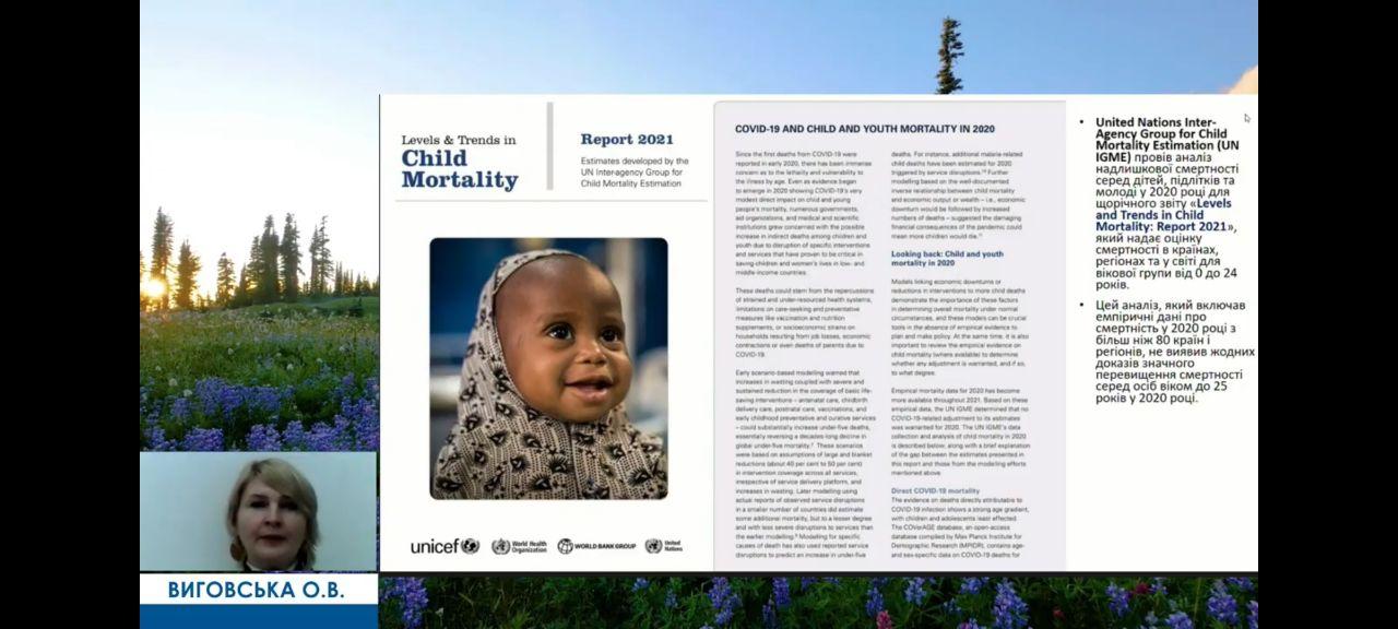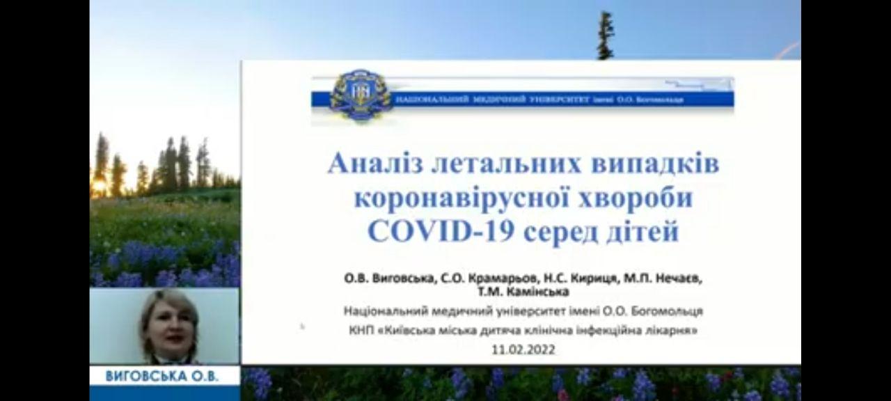 - «Аналіз летальних випадків коронавірусної хвороби COVID-19 серед дітей» — доктор медичних наук, професор, професор кафедри дитячих інфекційних хвороб О.В. Виговська О.В, завідувач кафедри дитячих інфекційних хвороб, доктор медичних наук, професор С.О. Крамарьов, кандидат медичних наук, асистент кафедри Н.С. Кириця, старший лаборант М.П. Нечаєв, кандидат медичних наук, доцент кафедри патологічної анатомії П.В. Кузик. Було наведено приклади клінічних кейсів, динаміку захворювання й план обстеження;