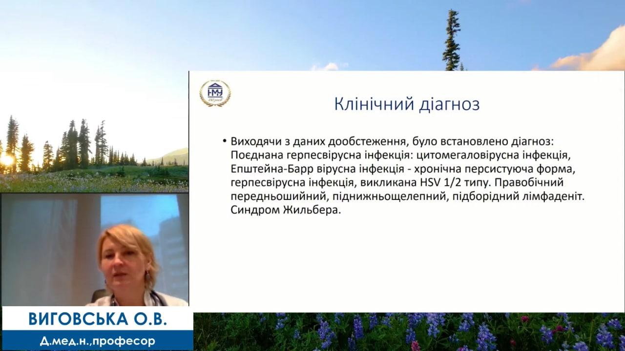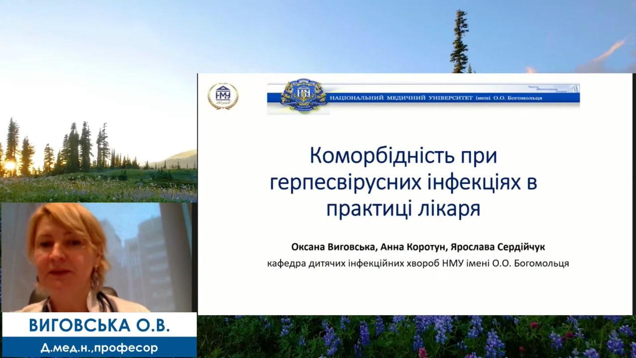 Наступного дня професор О.В. Виговська разом із студентками 3-го курсу медичного факультету №3 Я.Я. Сердійчук та 5-го курсу медичного факультету №1 А.С.Коротун виступила із доповіддю щодо «Коморбідності при герпесвірусних інфекціях у практиці лікаря». Висвітлювалися питання клінічного діагнозу, факторів, що впливають на розвиток полімоморбідності, анамнезу та динаміки захворювання.