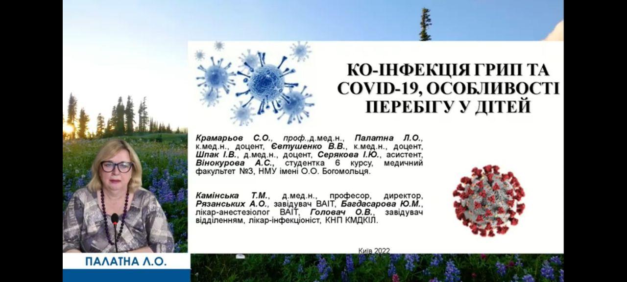 - «Коінфекція грипу та COVID-19, особливості перебігу у дітей» – завідувач кафедри дитячих інфекційних хвороб, доктор медичних наук, професор С.О. Крамарьов, кандидати медичних наук, доценти кафедри Л.О. Палатна, В.В. Євтушенко, І.В. Шпак, асистент І.Ю. Серякова та студентка 6-го курсу, медичний факультет №3А.С. Вінокурова;