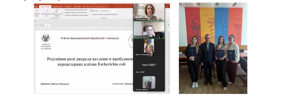 19 грудня 2025 року відбулося засідання студентського наукового гуртка кафедри фармакогнозії та ботаніки. Крім запланованого розбору мікроскопічного аналізу для стандартизації лікарської рослинної сировини, ознайомлення з методами, завданнями, послухали виступи студенток 5 курсу Дарина Форноляк, Діана Паламаренко, Тетяна Штиль. Вони поділилися своїм досвідом стажування і закріплення практичних навичок у Варшавському медичному університеті з третьокурсниками. Зустріч відбулася онлайн на платформі Zoom.