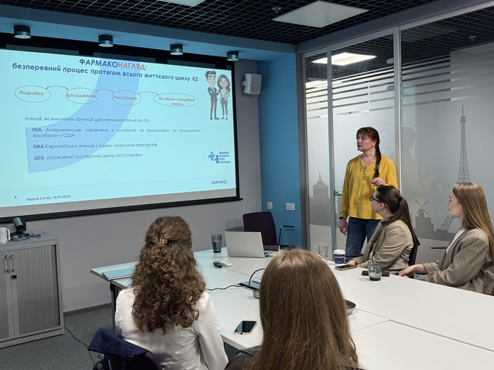 Асистентки кафедри організації та економіки фармації – Наталія Сахнацька та Ярослава Рафальська – разом з активними членами студентського наукового гуртка кафедри долучилися до участі у семінарі «Фармаконагляд – місія важлива!». Семінар відбувся в межах Меморандуму про співпрацю між Національним медичним університетом імені О.О. Богомольця та міжнародною фармацевтичною компанією «Servier». Під час заходу своїм досвідом і практичними кейсами поділилися фахівці департаменту фармаконагляду компанії «Servier», які висвітлили актуальні підходи до моніторингу безпеки лікарських засобів та взаємодії фармацевтів із пацієнтами.
