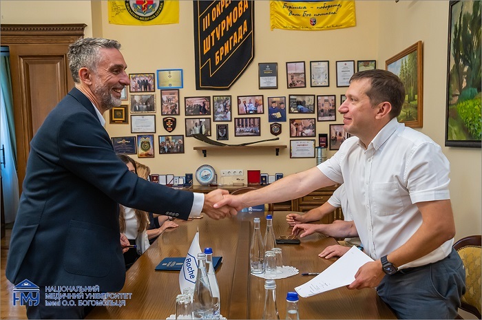 2 вересня 2025 року Національний медичний університет імені О.О. Богомольця та фармацевтична компанія «Рош Україна» підписали меморандум про співпрацю. Партнерство стосуватиметься розвитку напряму клінічних досліджень, реалізації спільних освітніх проєктів, стажування для викладачів, молодих вчених і студентів, обміну досвідом.