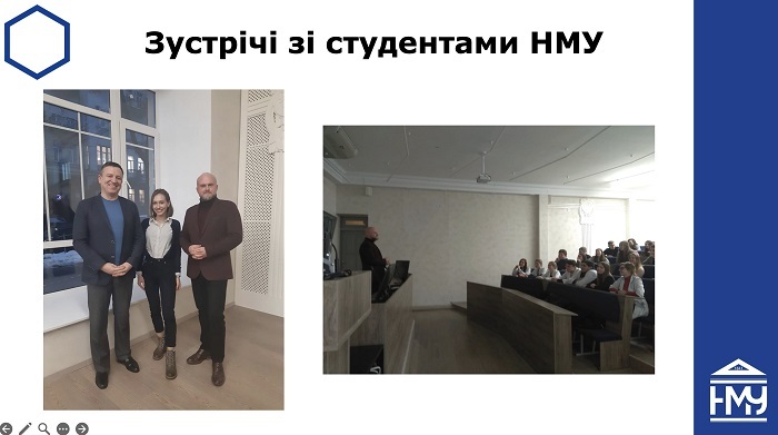 Лекторка розповіла про розвиток міжнародного співробітництва університету, інтеграцію НМУ в європейську університетську спільноту, а також про можливості для студентів реалізовувати себе у світовому науково-освітньому просторі. Особливу увагу було приділено розширенню партнерств, спільним освітнім і науковим проєктам та важливості міжнародної діяльності для університету.