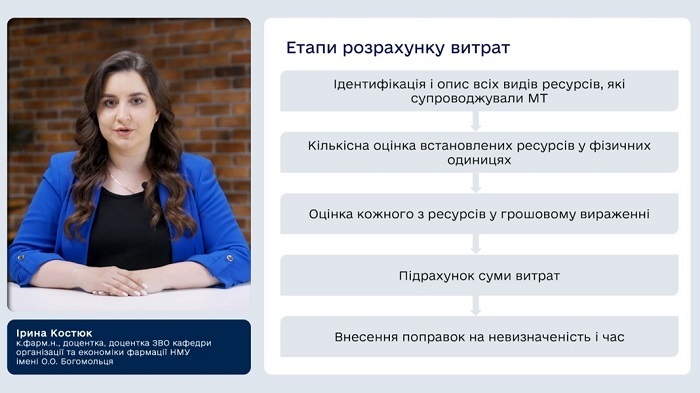 Доцентка кафедри, консультантка пілотного проєкту з госпітальної оцінки медичних технологій Ірина Костюк стала співрозробницею нового навчального курсу «Госпітальна оцінка медичних технологій», створеного для Академії Національної служби здоров’я України. Курс розроблено з метою надання представникам закладів охорони здоров’я ґрунтовного розуміння принципів і практичних аспектів госпітальної оцінки медичних технологій як ефективного інструменту для раціонального планування та використання фінансових ресурсів, прийняття управлінських рішень щодо впровадження інноваційних технологій або вилучення неефективних чи застарілих рішень, а також підвищення якості медичної допомоги.