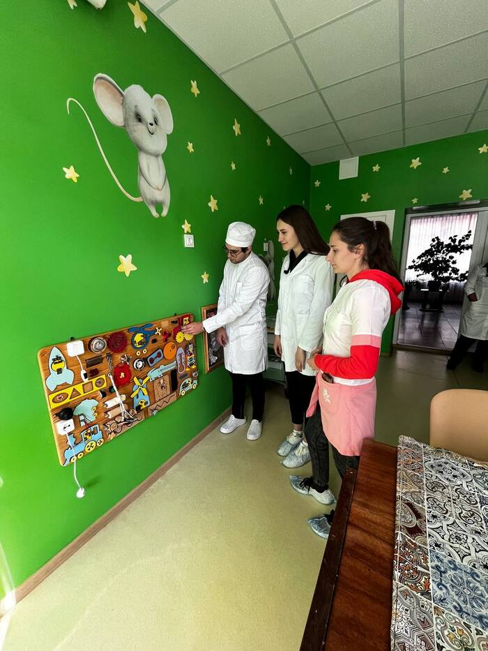 Професор Писарєв А.О. та студенти у відділенні молодшого дитинства на базі КНП «ДКЛ №3 м. Києва»