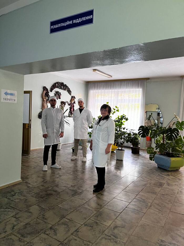 Доцент Дмитришин Б.Я. та студенти спеціальності 227 «Терапія та реабілітація» у відділенні реабілітації базі КНП «Київська міська клінічна лікарня №5».