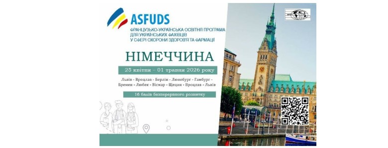 «Асоціація французько-української співпраці у сфері охорони здоров’я та фармації» (ASFUDS) у співпраці зі Світовою федерацією українських лікарських товариств (СФУЛТ) запрошують лікарів всіх спеціальностей, провізорів й інших працівників сфери охорони здоров’я, інтернів, студентів медичних університетів долучитися до освітньої програми, яка тривайте