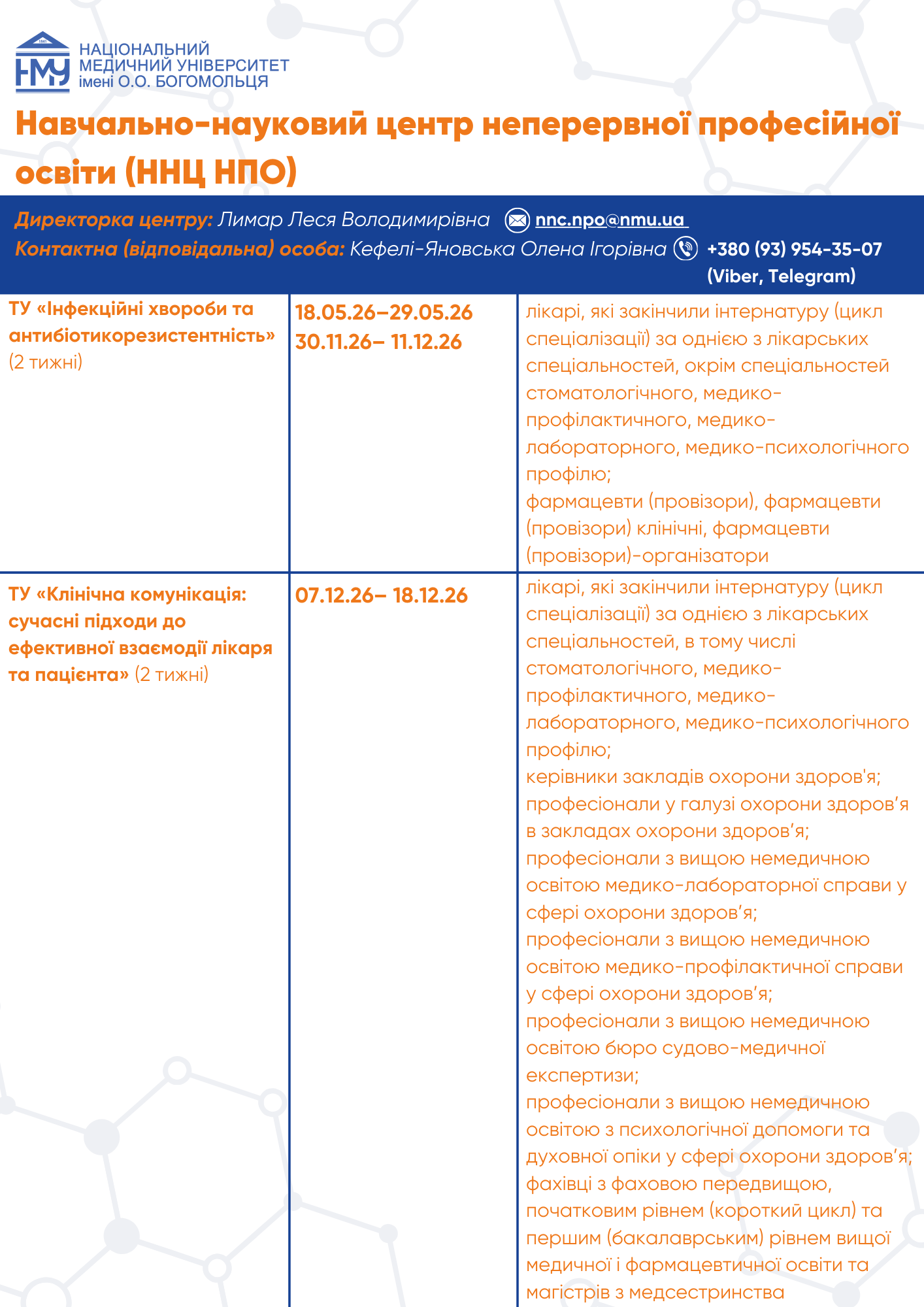 Післядипломна освіта та безперервний професійний розвиток медичних та фармацевтичних працівників