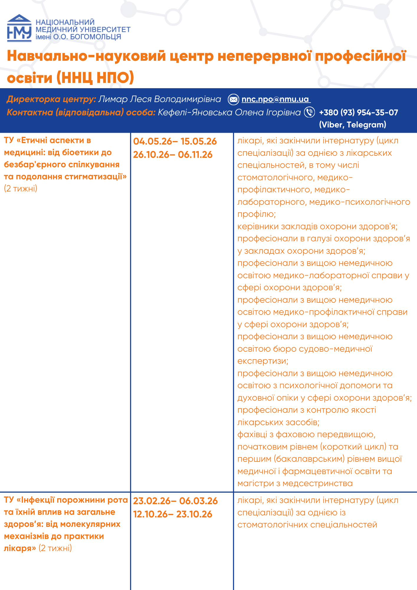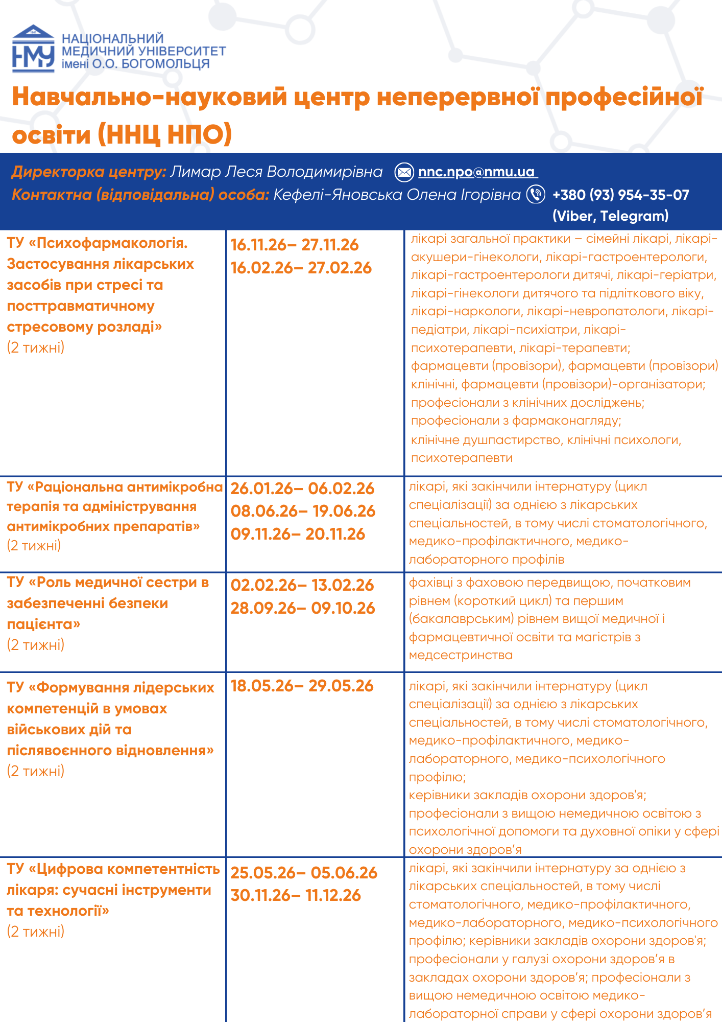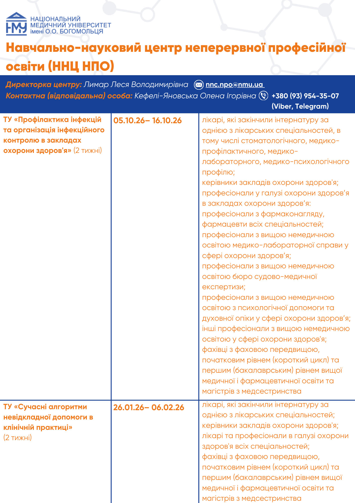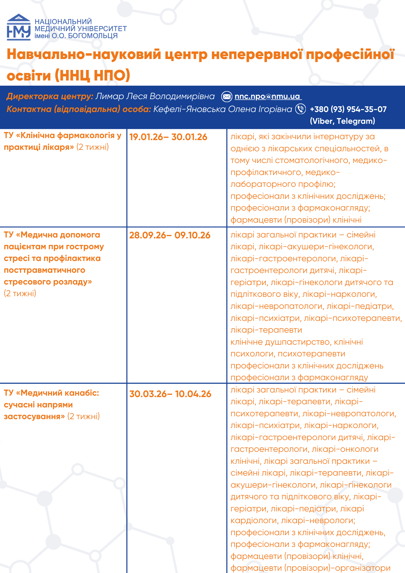 Післядипломна освіта та безперервний професійний розвиток медичних та фармацевтичних працівників