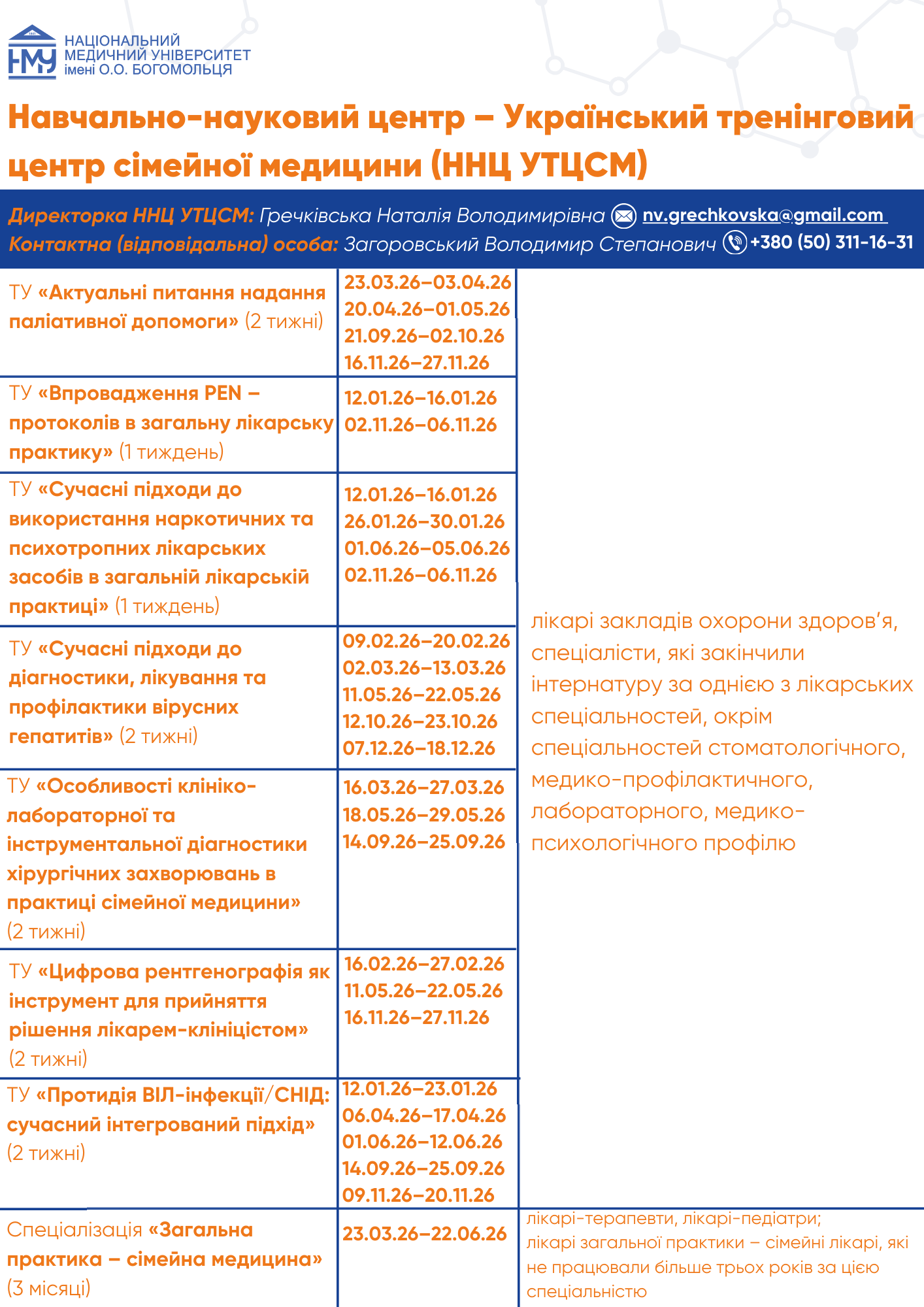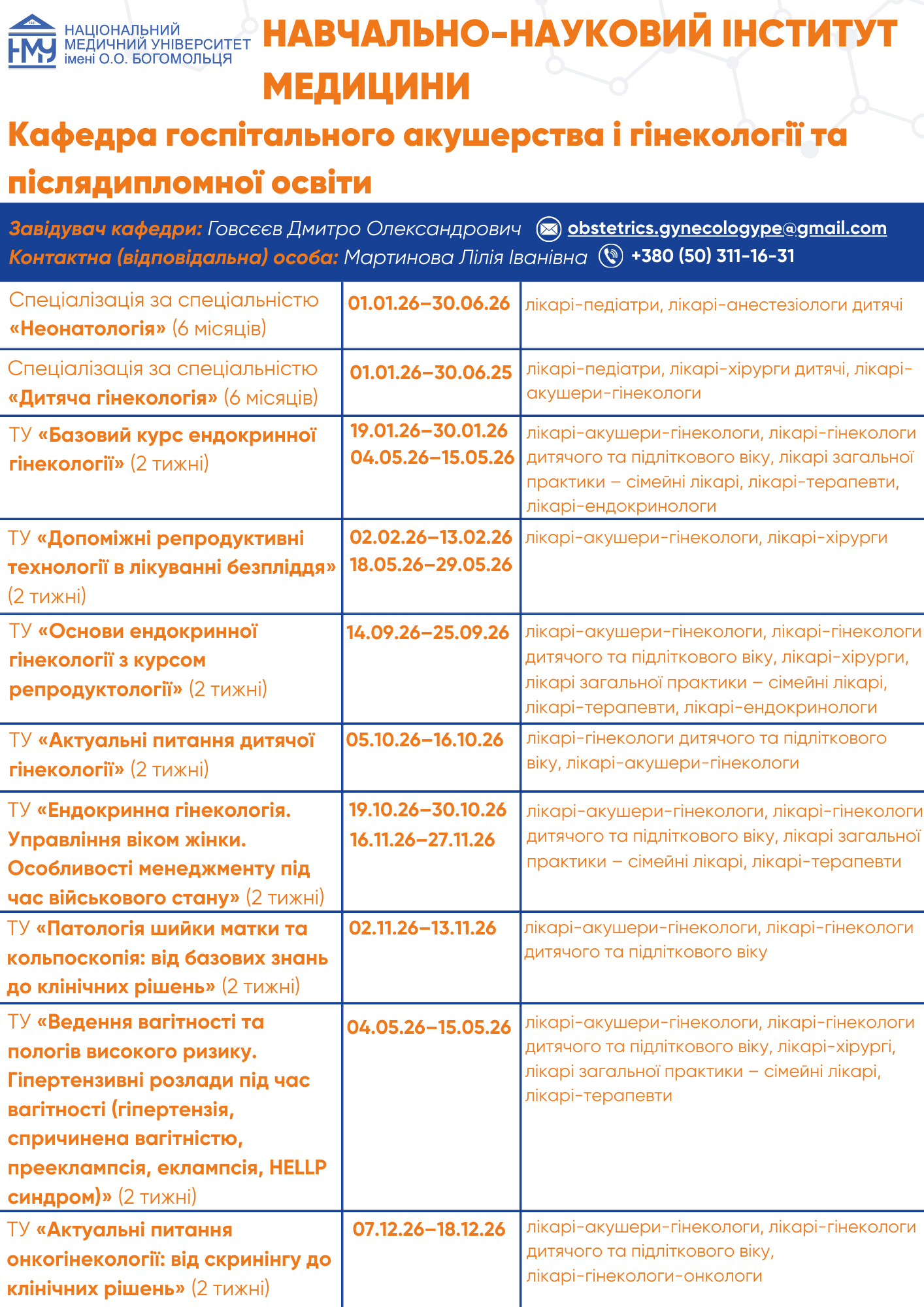 Положення про порядок професійного медичного стажування на клінічних кафедрах та структурних підрозділах Університетської клініки Національного медичного університету імені О.О. Богомольця: https://drive.google.com/file/d/1ZV0Zr1LXhXmbOGOH62BFLlLJm6TYHSjV/view