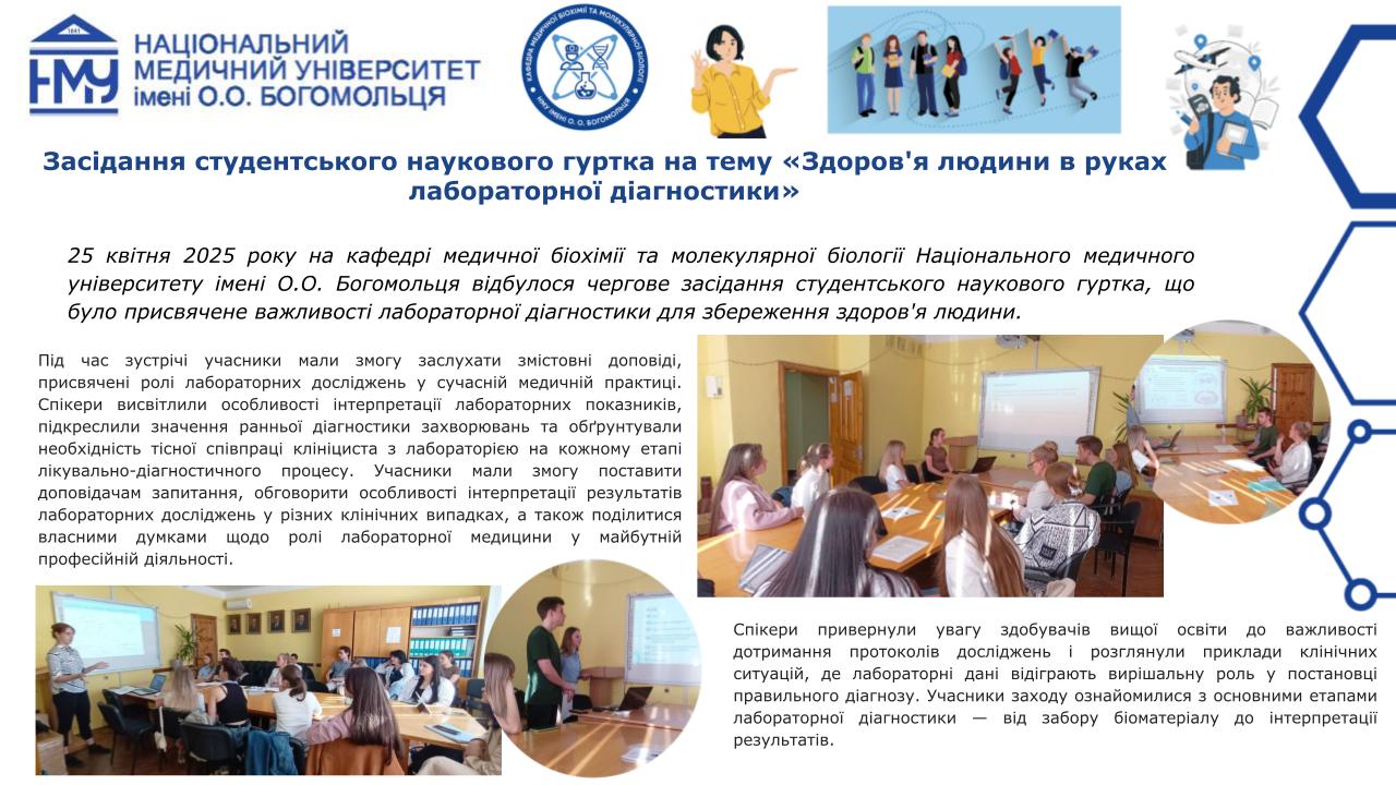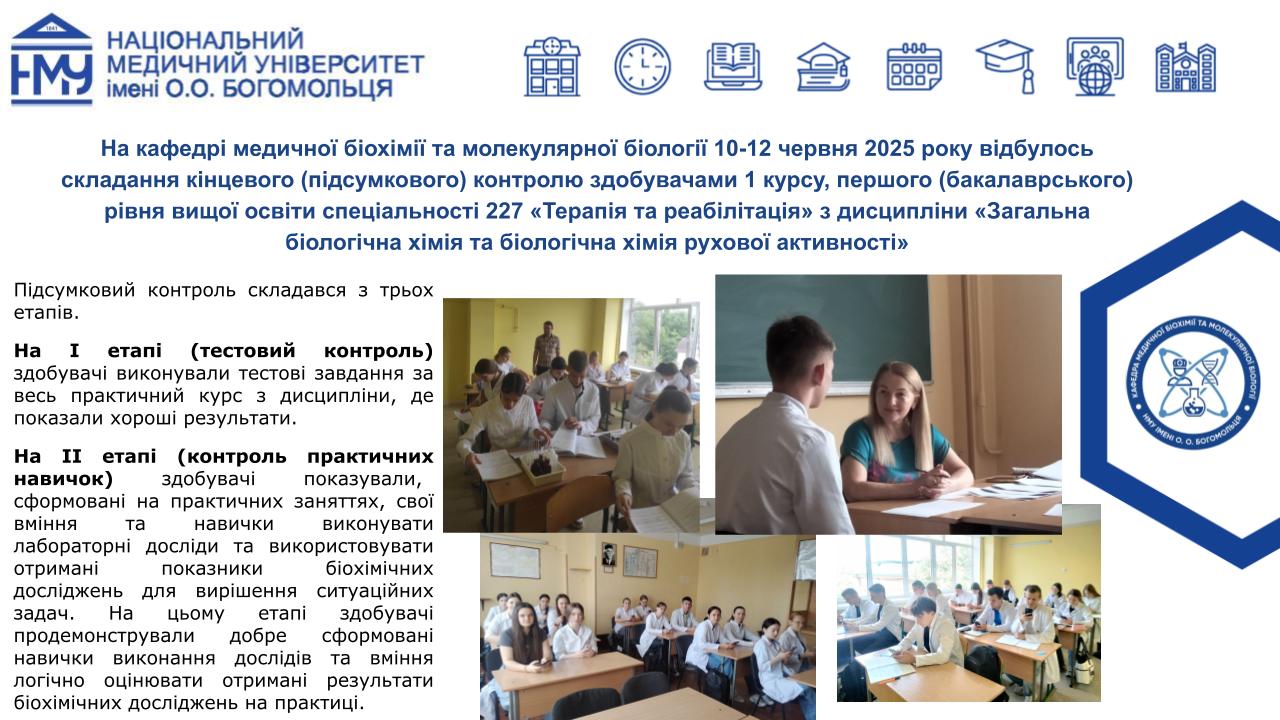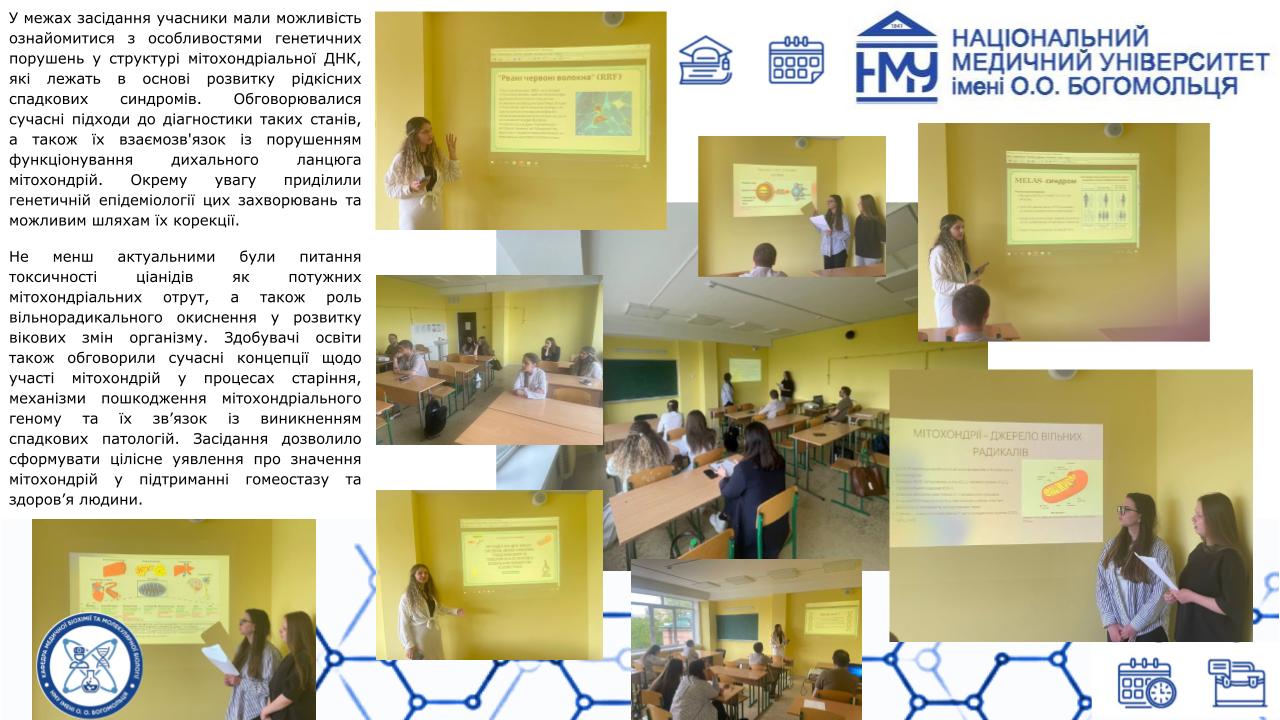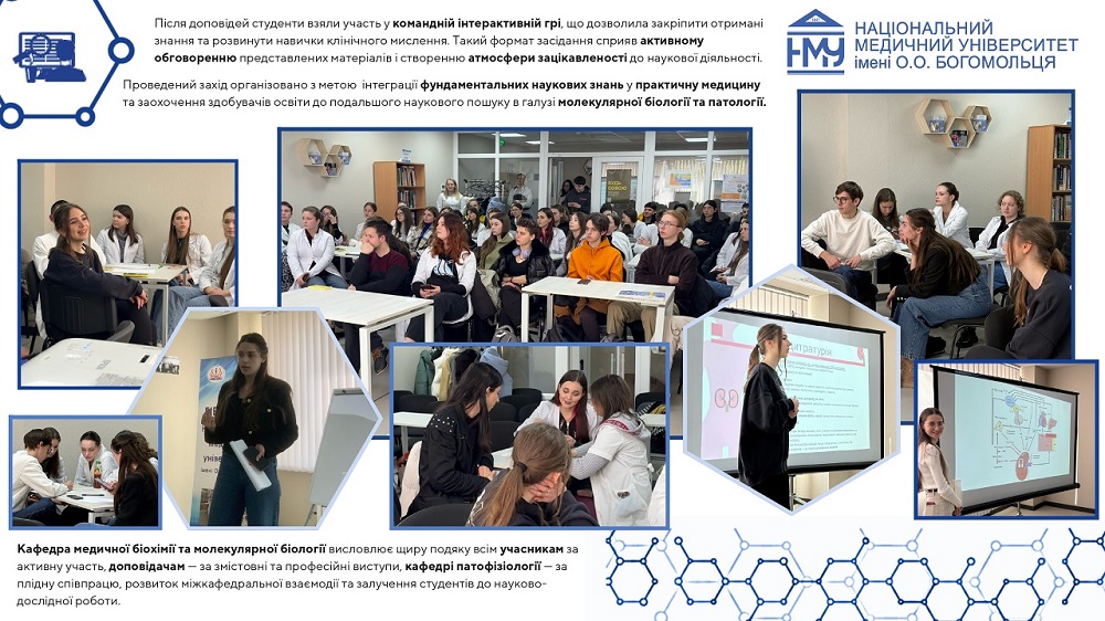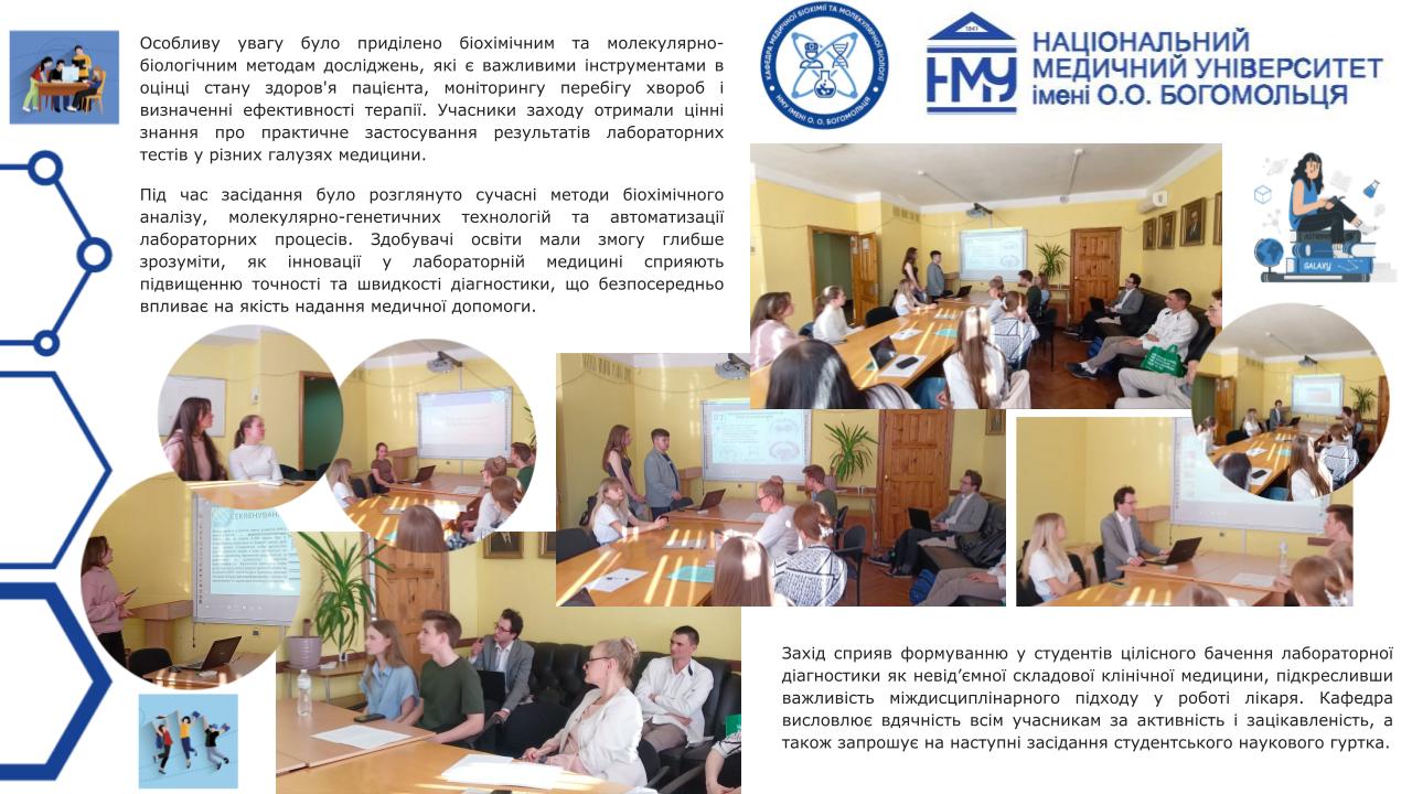 Професорсько-викладацький склад кафедри медичної біохімії та молекулярної біології Національного медичного університету імені О.О.Богомольця, а саме: завідувачка кафедри, доцент Яніцька Леся Василівна, професор Сліпчук Валентина Леонідівна, доценти: Стеченко Олена Володимирівна, Оберніхіна Наталія Володимирівна, Токменко Інна Ігорівна, Терещенко Наталія Юріївна, Філіппова Лариса Валеріївна та старші викладачі закладу вищої освіти: Макарова Наталія Миколаївна, Базалюк Людмила Володимирівна, Горкуненко Оксана Олександрівна, Малишевська Ганна Ігорівна, Кравченко Оксана Валеріївна, Сайковська Вікторія Василівна за особистий внесок у розвиток науково-дослідної роботи при підготовці медичних кадрів з медичної біохімії були прийняті в члени Українського біохімічного товариства.