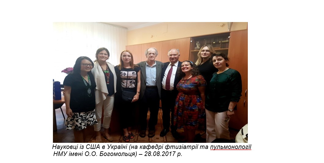 Брали участь співробітники НМУ і колеги з університетів США – проф. Петренко В.І. (зав. кафедри фтизіатрії та пульмонології), Гичка С. (зав. кафедри патологічної анатомії) та Роберта Хорсбург (проф. епідеміології Бостонського уніврситету, США), Наталія Рибак (лікар університетської клініки Університету Брауна), Рейчел Паділла (студентка), Елен Дженкінс (Бостон).