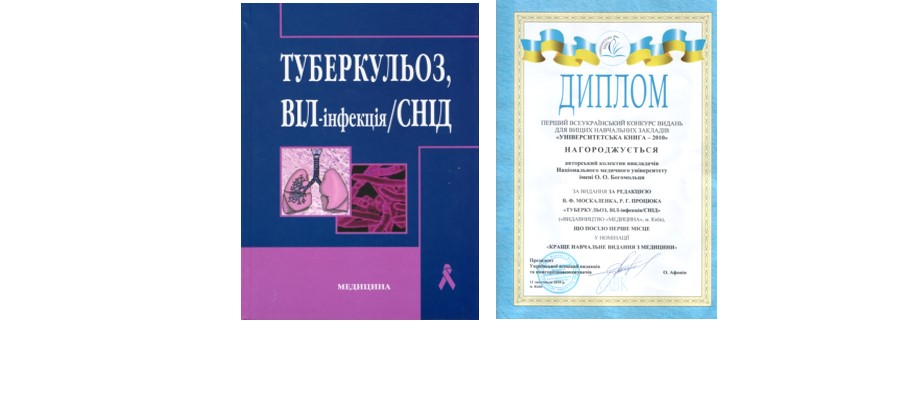 Підручник «Туберкульоз ВІЛ-інфекція/СНІД» (За ред. В.Ф.Москаленко, Р.Г. Процюк та інші) був визначений як краще навчальне видання з медицини у Першому Всеукраїнському конкурсі видань для вищих навчальних закладів «Університетська книга – 2010», за що отримано диплом