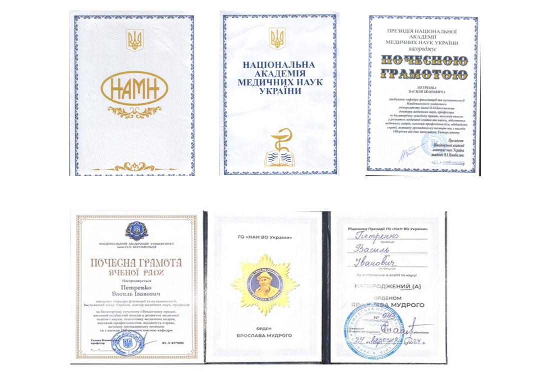 Петренко В. І. (завідувач кафедри, професор) – Почесна Грамота Вченої Ради Національного медичного університету імені О.О. Богомольця, Орден ЯРОСЛАВА МУДРОГО (отримано від ГО «НАН ВО України») (жовтень 2024), Грамота медичного факультету №3