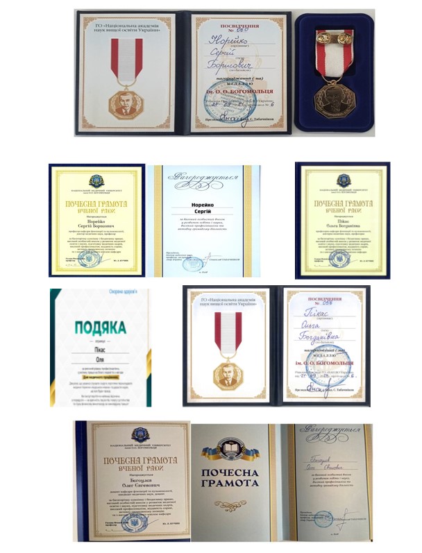 Норейко С.Б. (професор кафедри) – Почесна Грамота Вченої Ради Національного медичного університету імені О.О. Богомольця, Медаль ім. О.О. Богомольця (жовтень 2024)