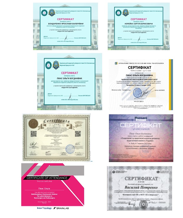 Семенюк М.А. (асистент кафедри) – Почесна Грамота Вченої Ради Національного медичного університету імені О.О. Богомольця, Грамота медичного факультету №3