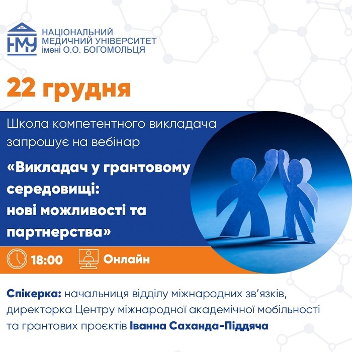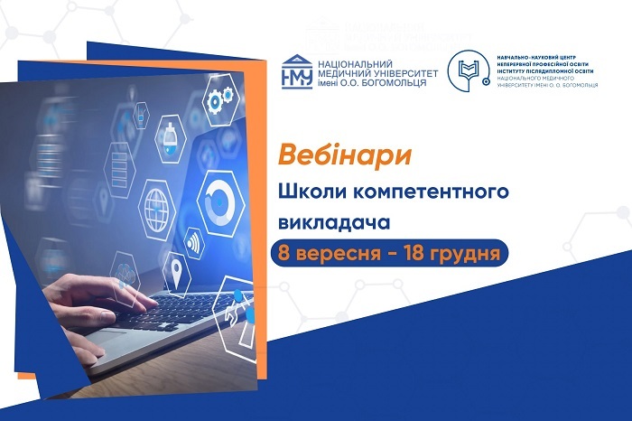 У вересні-грудні в Школі компетентного викладача Національного медичного університету імені О.О. Богомольця, що працює на базі Навчально-наукового центру неперервної професійної освіти Інституту післядипломної освіти, відбудеться низка вебінарів. У межах заходів учасники зможуть опанувати нові знання, обмінятися практичним досвідом, підвищити власну кваліфікацію. Цикл вебінарів стартує 8 вересня з теми попередження емоційного вигорання педагога.