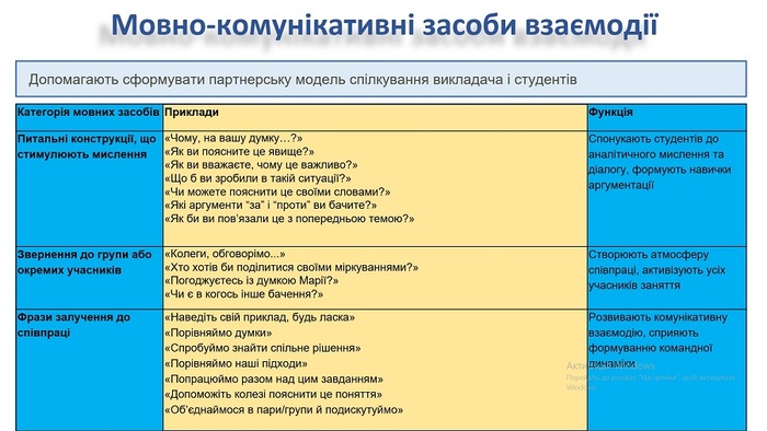 Методи і прийоми активізації навчання та роль невербальної комунікації викладача у навчанні |