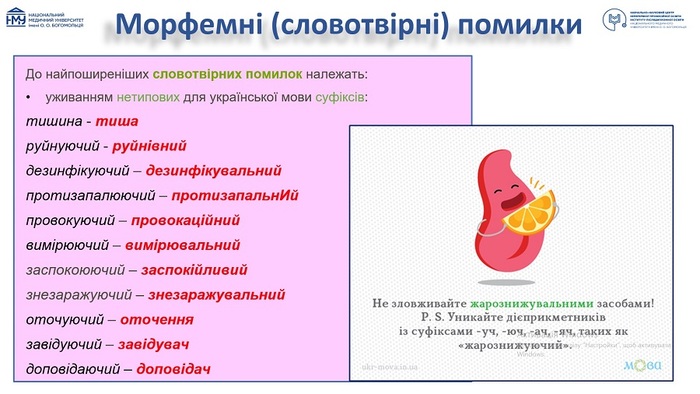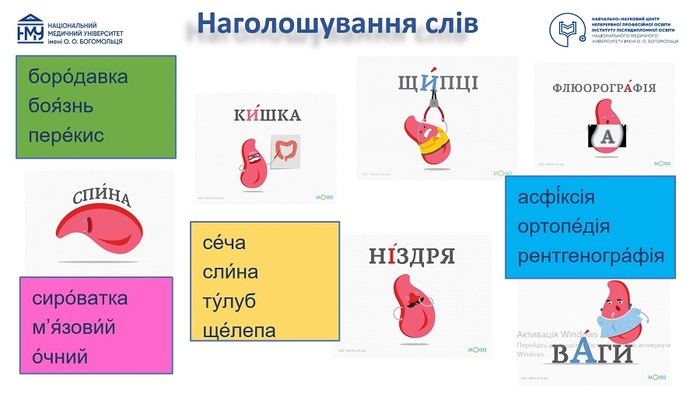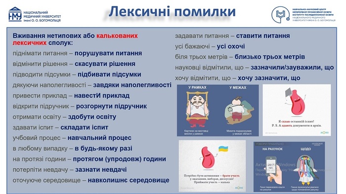 Окрім того, учасники детально опрацювали основні групи мовних помилок та окремо зосередилися на правильному наголошуванні медичних термінів й інших лексем, які часто використовуються під час спілкування в аудиторії. Адже, як зазначила лекторка, грамотне мовлення – це не лише засіб комунікації і передачі інформації, а й важливий чинник професійного зростання викладача, потужний фактор впливу на формування мовної культури студентів, суттєвий важіль впливу на їх мотивацію до навчання, значущий елемент професійного іміджу й основа створення продуктивної атмосфери під час освітнього процесу.