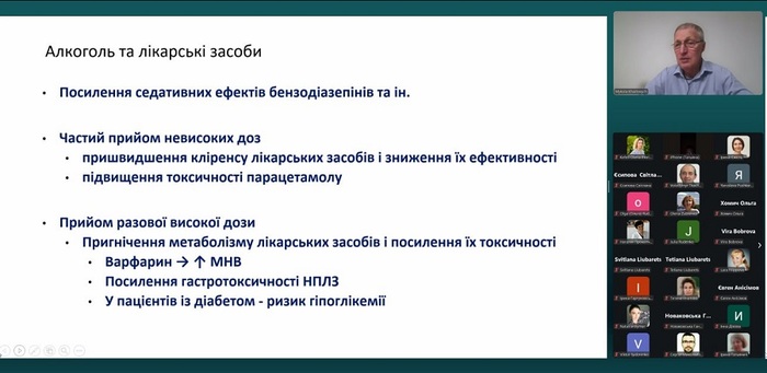 Під час лекції, яку провів завідувач кафедри клінічної фармакології та клінічної фармації, професор Микола Хайтович, сторони детально опрацювали питання щодо вживання алкоголю та лікарських препаратів. Розглянули ризики такого поєднання, що можуть призводити до небезпечних фармакологічних взаємодій. Особливо це стосується антибіотиків, протидіабетичних ліків, антидепресантів, нестероїдних протизапальних та гіпертензивних лікарських засобів.