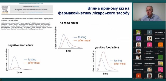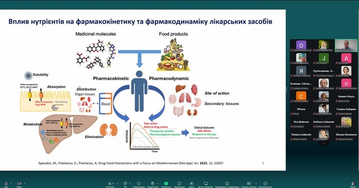 Окрім того, сторони дізналися, як велика кількість жирної їжі впливає на фармакокінетику препаратів і може змінювати швидкість їх всмоктування. Розібралися у причинах збільшення ризику розвитку побічних реакцій і медикаментозних ускладнень у період святкових днів. Спікер звернув увагу, що продукти харчування можуть підсилювати або послаблювати дію ліків, зокрема, цитрусові, кофеїн, а також їжа з високим вмістом солі чи гістаміну. Професор Микола Хайтович навів клінічні приклади та пояснив фізіологічні механізми, які спричиняють небажані взаємодії.