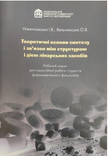 Ніженковська І.В., Вельчинська О.В. Теоретичні основи синтезу і зв’язок між структурою і дією лікарських засобів: робочий зошит для самостійної роботи студентів фармацевтичного факультету (аудиторної та позааудиторної). Навчально-методичний посібник для самостійної роботи здобувачів магістерського рівня вищої освіти, спеціальність I8 «Фармація». – К.: Книга-плюс, 2025, – 123 с.