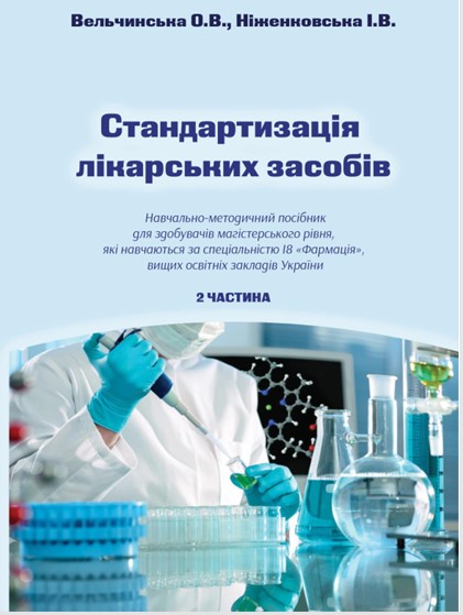 Вельчинська О.В., Ніженковська І.В. Стандартизація лікарських засобів: для студентів спеціальності І8 «Фармація». Навчально-методичний посібник для здобувачів магістерського рівня, які навчаються за спеціальністю І8 «Фармація», вищих освітніх закладів України. 2 Частина. – К.: Книга-плюс, 2025, 200 с.