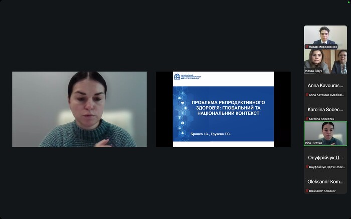 Засідання секції «Громадське здоров’я в умовах глобальних викликів» проходило у дистанційному форматі з використанням платформ для відеозв’язку під головуванням завідувачки кафедри громадського здоров’я, к. мед. н., доцентки Наталії Гречишкіної. Модераторами наукової дискусії виступили к. мед. н., доцентка Інесса Бібик та к. пед. н., доцентка Ганна Іншакова.