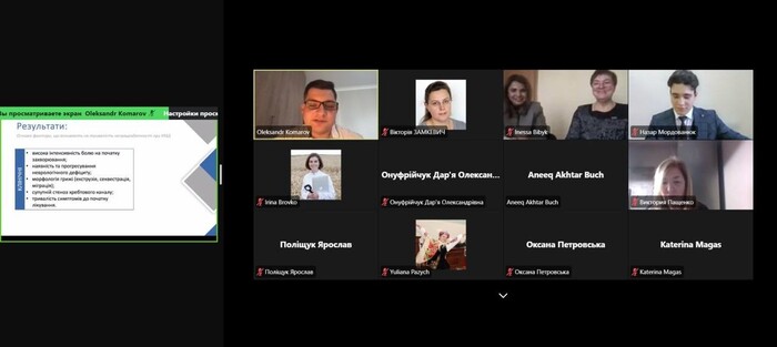 Спікери підняли низку важливих питань забезпечення якості медичної освіти, у т. ч. підходів до системи оцінювання, відповіли на запитання модераторки заходу, начальниці відділу навчально-методичної роботи, ліцензування та акредитації, забезпечення якості освіти НМУ імені О.О. Богомольця, доцента Кучеренко І.І. та учасників заходу.