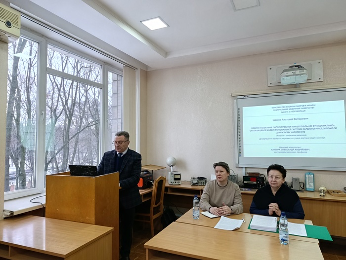 На розширеному засіданні кафедри громадського здоров’я 26.12.2025 р. у форматі фахового семінару відбулася публічна апробація дисертації на здобуття наукового ступеня доктора медичних наук докторанта Іванюка А.В. на тему «Медико-соціальне обгрунтування концептуальної функціонально-організаційної моделі регіональної системи кардіологічної допомоги дорослому населенню».
