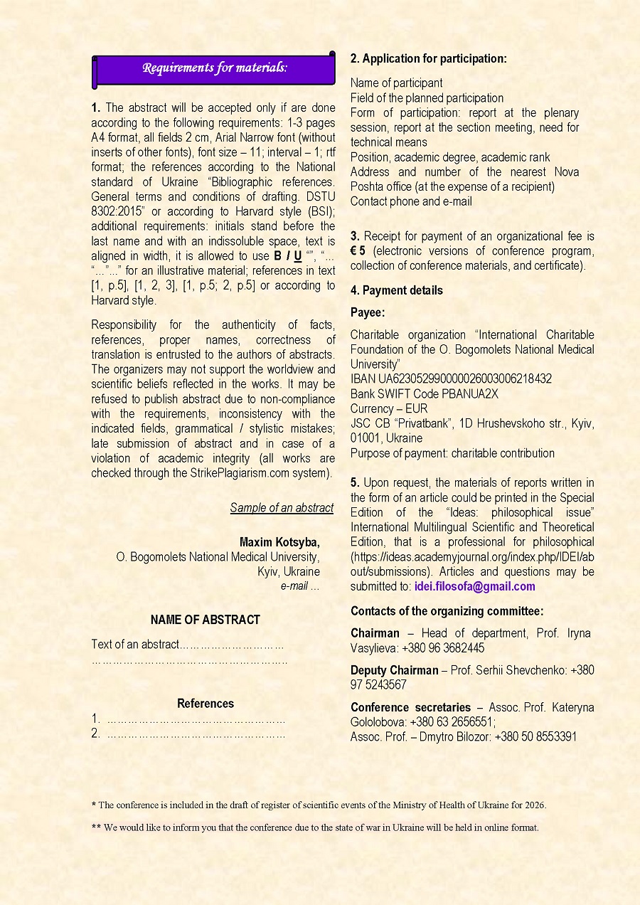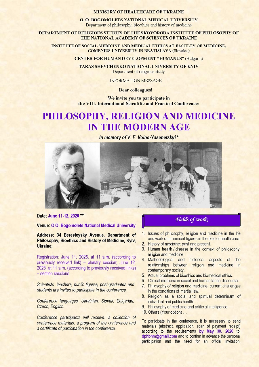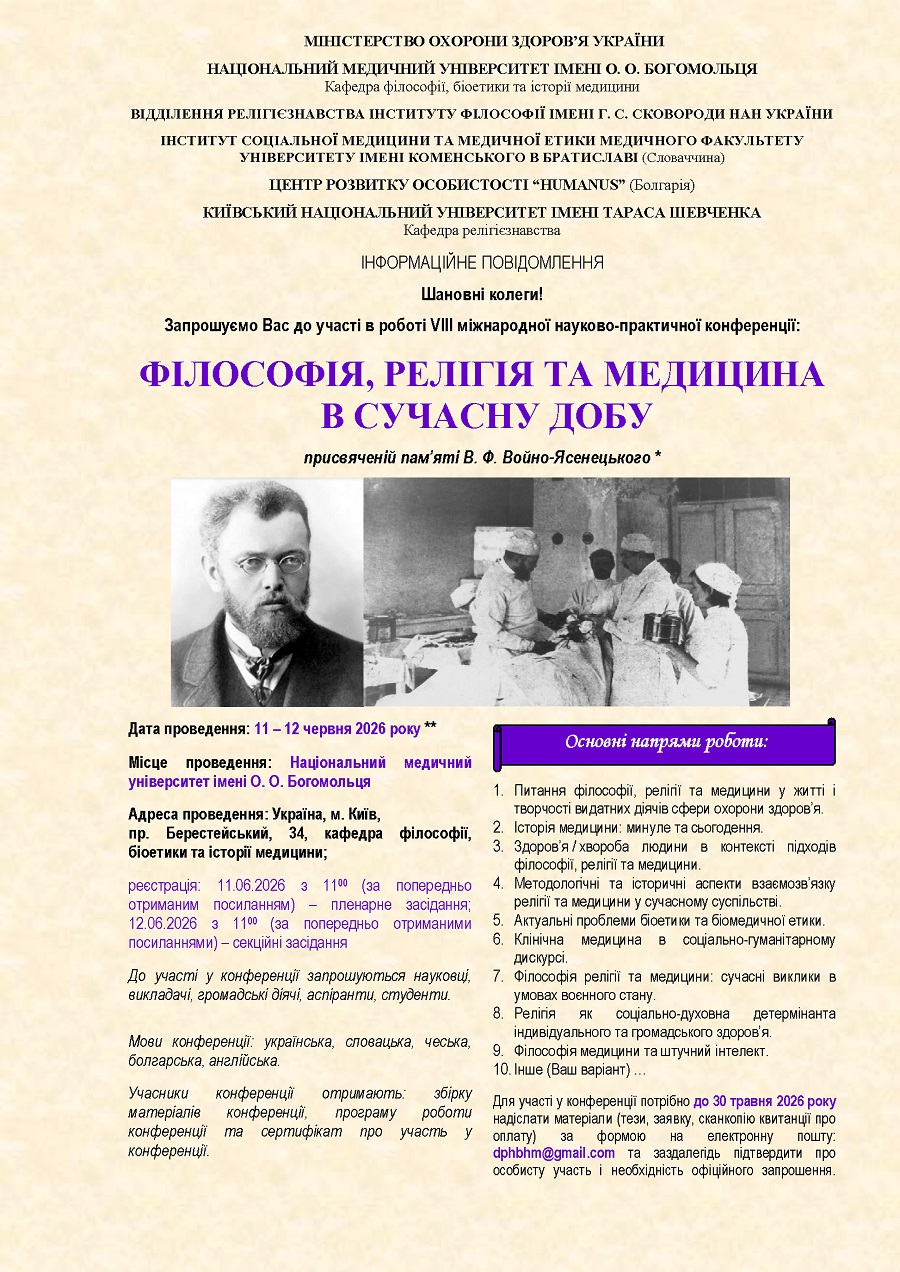 18 травня об 11 00 на базі кафедри філософії та соціології Національного медичного університету імені О.О.Богомольця, опорної кафедри МОЗ України з філософії, відбудеться нарада завідувачів кафедр (курсів філософії)