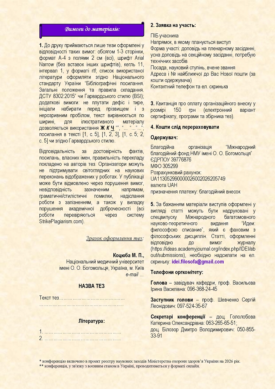 1. Питання науково-методичного та організаційного забезпечення викладання філософії та філософських дисциплін для магістрів за спеціальностями: 222 «Медицина», 221 «Стоматологія», 225 «Медична