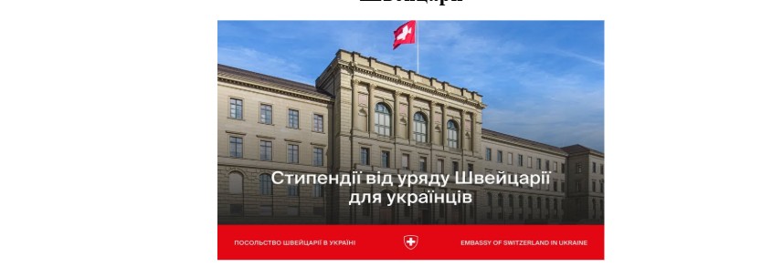 Стипендії для українських дослідників та науковців від уряду Швейцарії